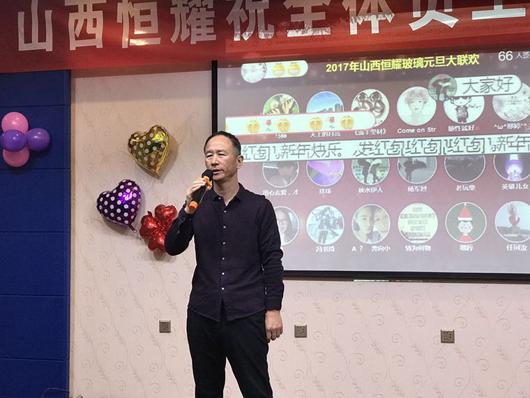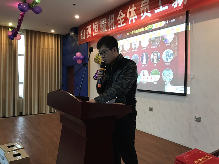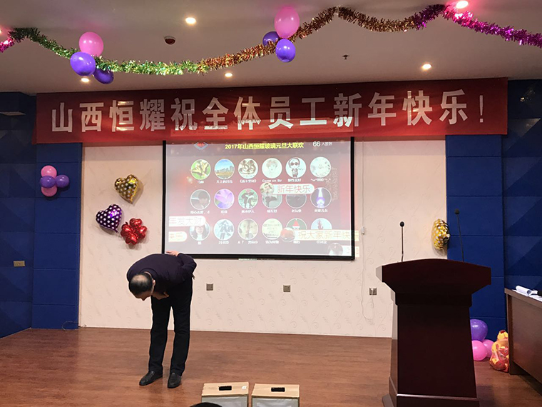 公司董事長樊雙管先生致賀詞並介紹(shào)了現場嘉(jiā)賓,公司總經理王玉梅女士致新春賀詞,王總經理說(shuō):緊張忙碌的2016年(nián)已經過去,公司在董事會下(xià),公司的帶領下,在全體員(yuán)工的努力下,取得了的成績。希(xī)望(wàng)全體員工共(gòng)同努(nǔ)力(lì),圓滿完成公司的2017年各項公司目標,預祝大家合家歡(huān)樂(lè),身體,萬事如意。