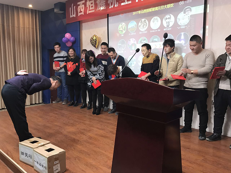 此次聯歡會各部門員工帶來了形式各(gè)異、讓人目不暇接(jiē)的武術,舞(wǔ)蹈、唱歌等節目,五彩繽紛(fēn),精彩紛呈,中間還穿插了抽(chōu)獎環節,隨著搖一搖(yáo)、抽獎等形式(shì)抽取三等獎、二等獎、一等獎、特等獎,不斷掀起(qǐ)年會的高潮。聯歡會不僅給(gěi)大家帶來了歡(huān)聲笑語,同(tóng)時也讓同事之間彼此的心更加貼近。公司與員工親情互動、激動人心的抽獎活動,讓(ràng)歌聲、掌聲(shēng)、歡呼聲一直在會場上蕩漾。整場聯歡會高潮迭起,呈現出91在线网站玻璃這個大家(jiā)庭的歡樂(lè)和諧。
